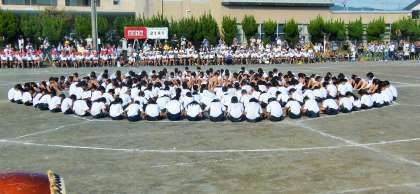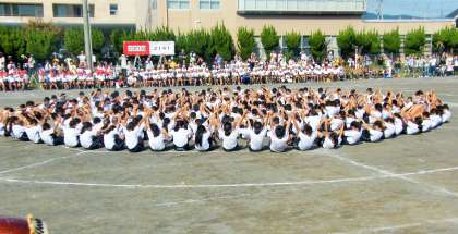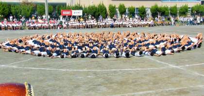 グループごとによる「小さな花」の演技から、運動場中央に隊形移動をした後、「大きな花」の演技に移っていきます。