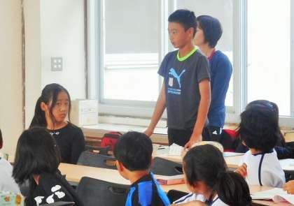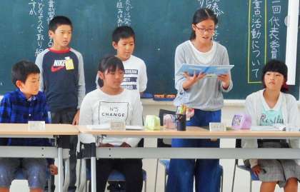各クラスで話合われた意見を発表している子供たちの様子を紹介します。
