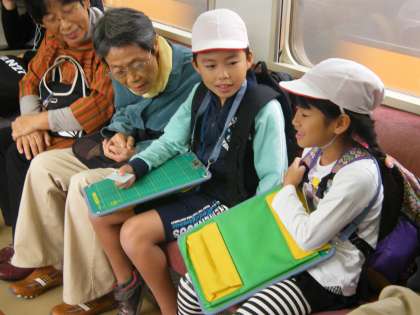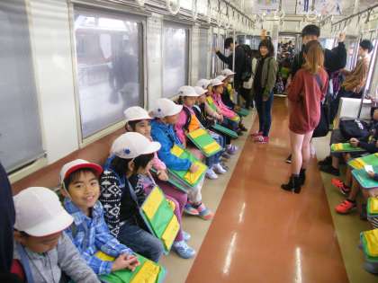 「どこの学校?」「どこへ行くの?」と声を掛けられ、うれしそうに答えたり、席をゆずっていただき、「ありがとう」と明るく言ったりと、わくわく、どきどきしながらの車中でした。