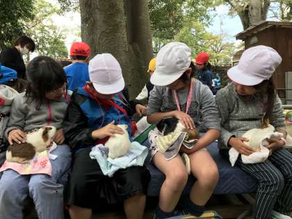 どうぶつ広場では、たくさんの動物たちとふれ合いました。