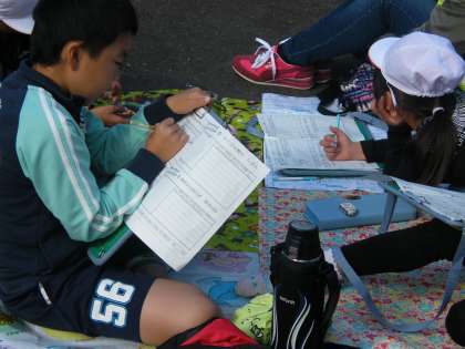 お昼ごはんが終わり、子どもたちは、たくさんの気付きや発見を「見つけたよ かんじたよ」のカードにまとめています。学校での、これからの学習に生かしていきます。
