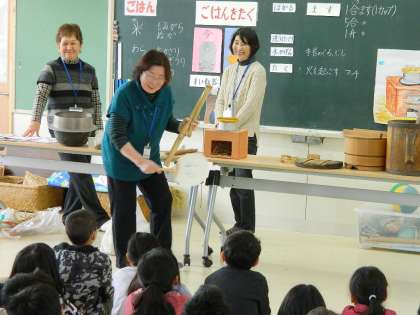 静岡県退職女性教職員の会沼津支部の皆様を講師としてお招きし、3年生が「昔のくらし」について学びました。