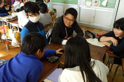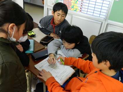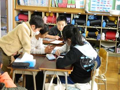 5年生は、ファミリー解散式の計画を進めています。ファミリーとは、1年生から6年生までを縦割りにした異年齢グループのことを指します。1年間、共に活動してきたファミリーも、今月末の「6年生ありがとうの会」の日に、解散します。この時間は、当日ファミリーで行なう遊びの内容について話し合っていました。