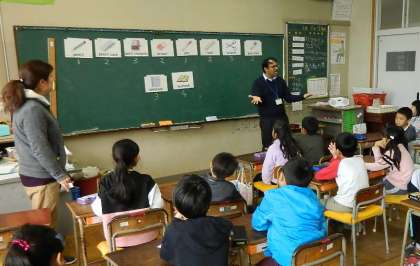 2年生の英語の時間です。買い物に使うフレーズを学んでいました。