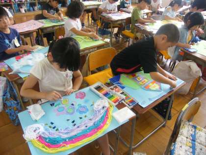 図工では、「ざいりょうからの ひらめき」の学習を進めています。