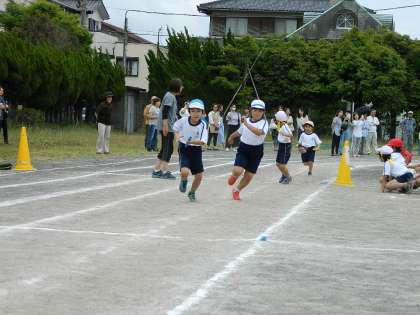 2レース目のスタートです。こちらも上手にバトンタッチをしています。きりっと引き締まった表情に成長が感じられます。