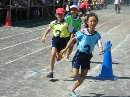 各クラスの代表が、力いっぱい走り、バトンをつなぎました。学年が上がるにつれて、走り方やバトンの渡し方など、上手になっていくのが分かりました。