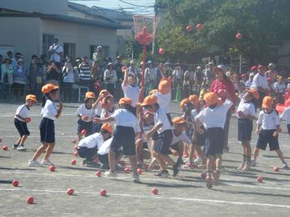玉入れは、それぞれのクラスで休み時間にも練習をがんばっていました。練習のたびに1位になるクラスが変わるくらい、どのクラスも良い勝負をすることができました。