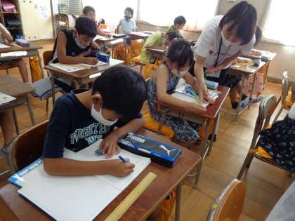 「1cm」を学習しました。「cm」が上手に書けるようにノートにくり返し練習します。
