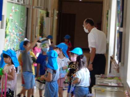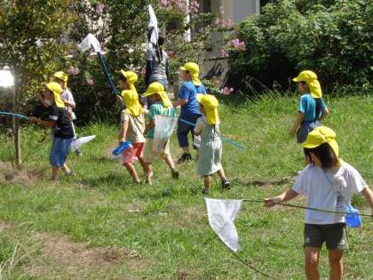 とれた虫を校長先生にうれしそうに見せている姿もほほえましいです。虫を追いかけた後は、教室で発見したことを書いていました。