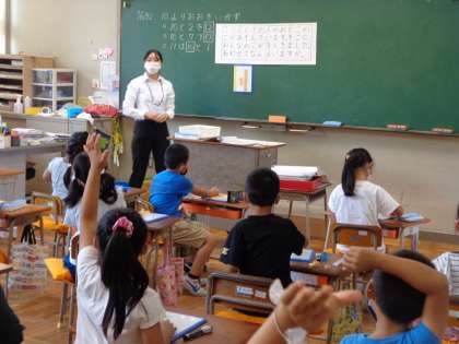 先週から1年生と2年生のクラスに入っている教育実習の先生が、人生初授業を行いました。緊張しながらも、子供たちの言葉や表情をよく見ようとしている様子が伝わってきました。