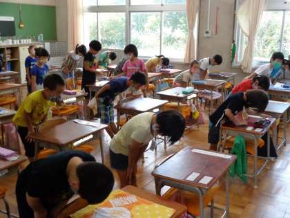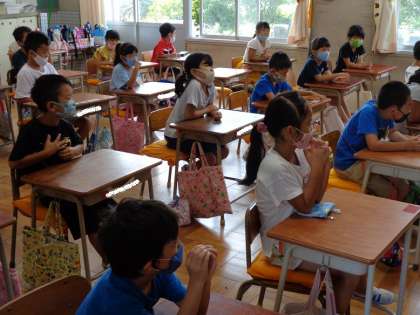 放送で9月の朝会を行いました。校長先生からは、新型コロナウイルスに感染した人がいた場合、差別することなくいたわりの心をもって接しようというお話がありました。感染症にかかわらず、みんなが安心して生活できる学校、仲間作りをしていきたいと思います。その後、健康安全部長より、学年運動会に向けて目標をもって一致団結して盛り上がろうというお話がありました。最後に、教育実習生が自己紹介をしました。