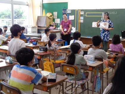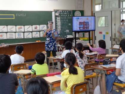 “stationary”文房具の言い方を復習した後、“I have a〜.”“I don't have a〜”で持っている物、持っていない物を伝え合うことに挑戦します。