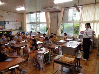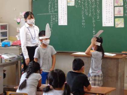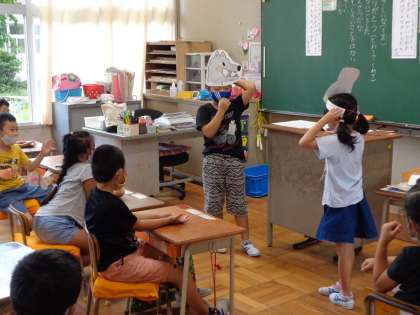 教育実習の先生が道徳の授業を行いました。「はしのうえのおおかみ」というお話のおおかみの気持ちに共感しながら、だれにでも親切にすることの大切さを感じることができました。