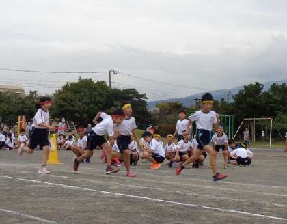 リレー対決です。4年生になると、バトンパスが上手になります。力強い走りでした。