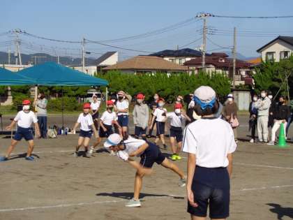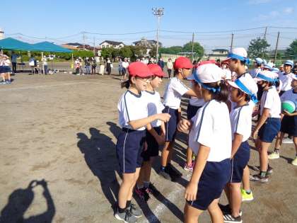 リレーの後は、ドッジボール対決です。投げる方もキャッチする方も、逃げる方も一生懸命です。試合が終わると、お互いの健闘をたたえ合ってグータッチ! さわやかな笑顔がこぼれます。