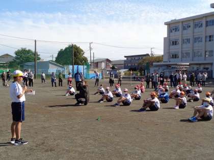 秋晴れの中、6年生の学年運動会が行われました。体育委員が開閉開式や体操などを進行し、最高学年らしい運動会でした。開会式には、1年生が応援に来て、6年生に大きな声でエールを送りました。