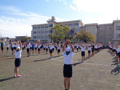 秋晴れの中、6年生の学年運動会が行われました。体育委員が開閉開式や体操などを進行し、最高学年らしい運動会でした。開会式には、1年生が応援に来て、6年生に大きな声でエールを送りました。