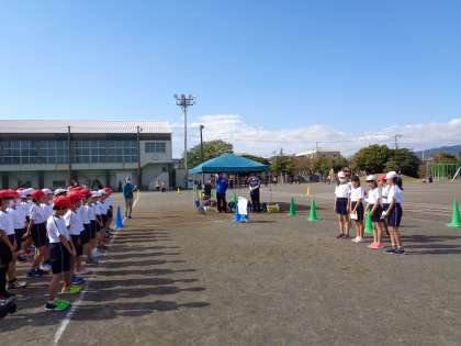 令和2年の運動会の最後を飾るのは5年生です。さわやかな秋晴れの中、5年生の学年運動会が始まりました。