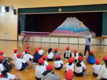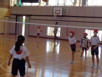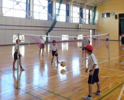 ソフトバレーボールで、次の人が打ちやすいようなトスを上げる練習をしていました。