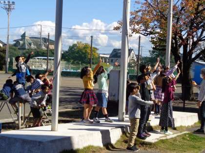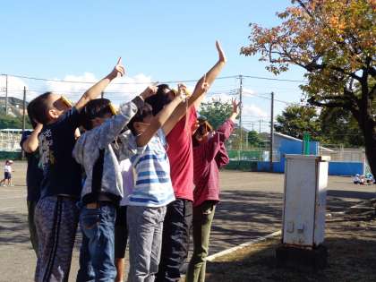 遮光板で太陽を見ていました。太陽の方向と影の方向を確かめて、逆にあることに気付きました。