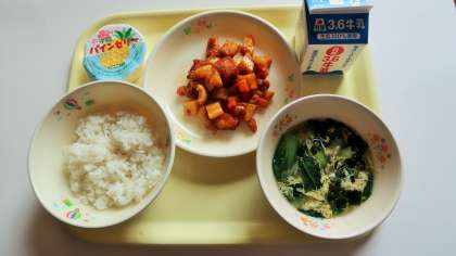 ・スープの具がたくさんでおいしかったです。いかのおかずがおいしかったです。今日は完食でした☆彡