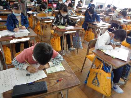 姿勢を正して、お手本をよく見てていねいに鉛筆を動かしていました。