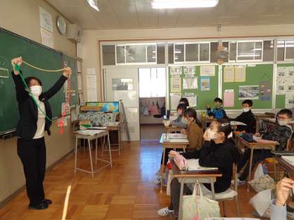 栄養素が体内でどのような働きをするのか、栄養教諭の横田先生から教えてもらいました。バランスよく食べることの大切さを改めて実感していました。