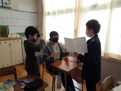 委員会活動を4年生に紹介するスピーチをします。それぞれの委員会に分かれて、仕事の内容ややりがいなど、4年生に伝えたいことを整理したり話す練習をしたりしていました。