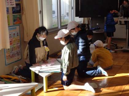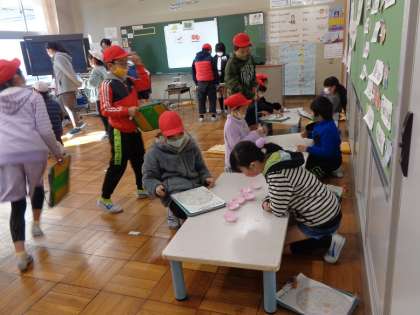 I want〜.の文を使って、オリジナルピザにのせたい物をもらいます。具がたっぷりのピザができあがりました。