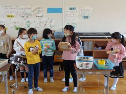 グループで歌や楽器の練習をするのも上手になってきました。今日は、「かぼちゃ」を演奏しました。