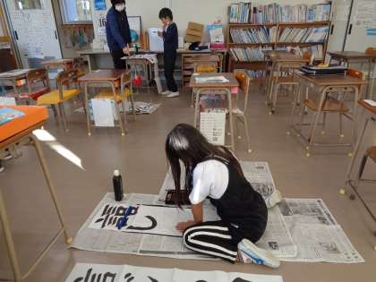 1組さんが、書き初めの練習をしていました。お手本を見ながら一生懸命取り組んでいました。