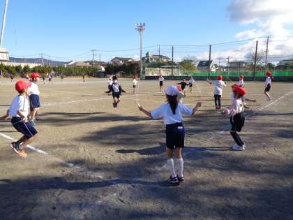 今日は今年一番の寒さですが、子供たちは元気いっぱいです。来週からは、なわとび運動も始まります。2年生はグループでだれが一番長く跳べるか競い合っていました。