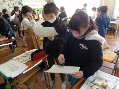2学期に学習した生活時間や家の仕事への取組を尋ねたり答えたりする表現を使って、インタビューをし合いました。家の仕事への取組は、いつも=always 普通は=usually ときどき=sometimes 全くやらない=never を使って答えることができました。