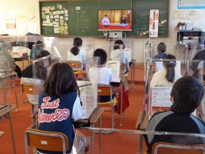 日直さんのピアノの号令で授業が始まりました。琴と尺八で奏でる「春の海」を聞いて、「お正月に聞いたことあるよ」という声が聞こえました。