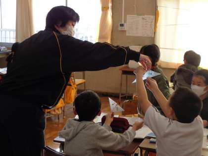 三角形の性質を学習しています。三角定規を組み合わせて二等辺三角形を作ってみます。どんな二等辺三角形ができるかな? 「これも二等辺三角形だよ。」とつぶやきが聞こえてきました。