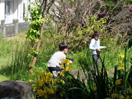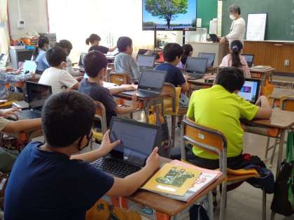 春の自然を見つけて、Chromebookで写真を撮ってみんなで共有します。