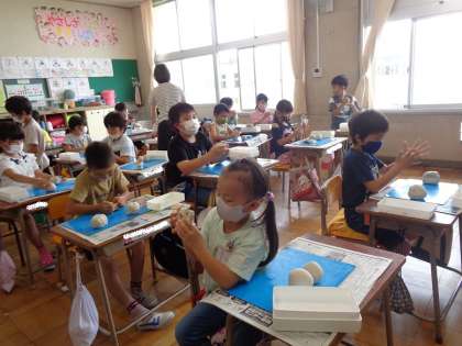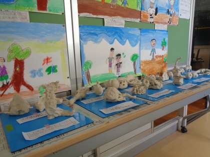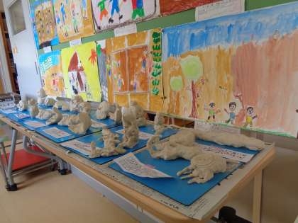 丸めてつまんで引きのばして、立体的な粘土の作品ができました。