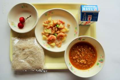 ・肉みそソースがこくてうまかったです。さくらんぼも甘かったです。おいしくいただきました。