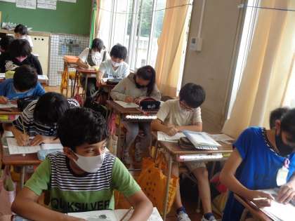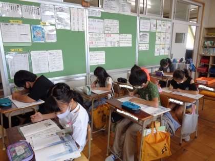 毛筆で学んだことを生かして、硬筆でひらがなを書きました。姿勢を整えてていねいに書くことができました。