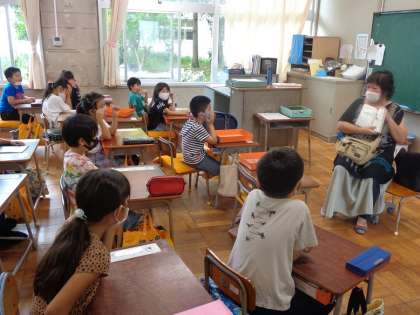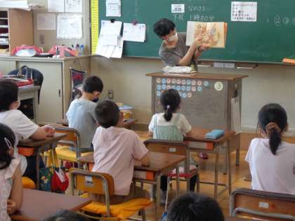 昨年度はできなかったわくわくお話タイム。今年度の第1回は今日。1、2年生の教室に読み聞かせボランティアさんが来てくださいました。読み聞かせにじっと聞き入る子供たちの姿、さわやかな朝のスタートです。