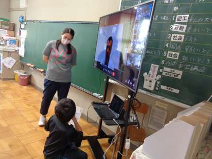 お話を聞いて、各クラス2名ずつ感想を述べたり質問をしたりしました。
