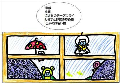 ・七夕づくしの給食でとってもおいしかったです!ささみのチーズフライvery goodでした!!