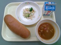 ツナごはん 牛乳 レバー入りつくね 塩ナムル はるさめスープ