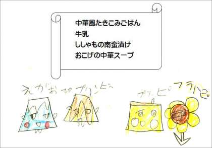 写真は、「中華風炊込みごはん」「ししゃもの南蛮漬け」「中華スープ」に使用した野菜です。沼津市では、9月に続き10月も配膳の過程を省略できる献立となっていますが、工夫をして、たくさんの食材を使って給食を作っています。