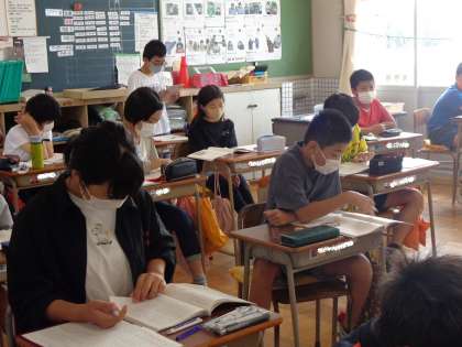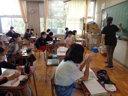 「きつねの窓」で主人公の「ぼく」の心情の変化を読みとり、表にかき込みました。考えたことを話し合っています。