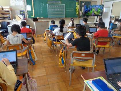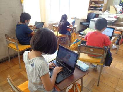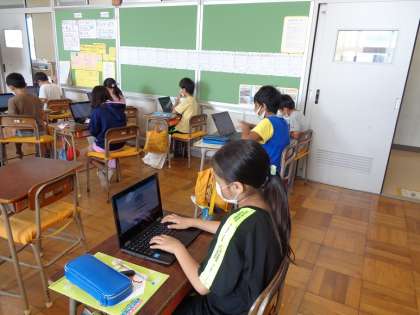 ローマ字を学習中の3年生。タイピングも一緒に練習しています。両手でポジションを意識して正しく入力できるようにがんばっています。