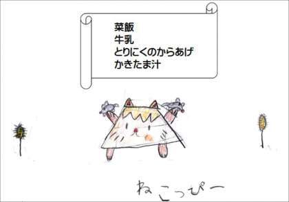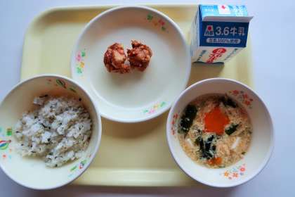 ・かきたま汁がアツアツでした。それがどれだけ幸せなことか!からあげジャンケンはほとんどの子が参加していました。
