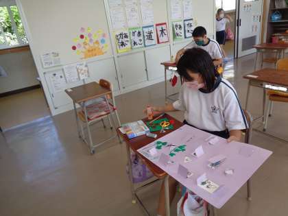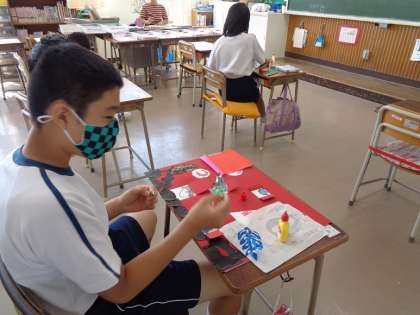 カッターナイフを使ってたくさんの窓を開けました。その窓の中に何があるかな?
