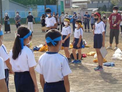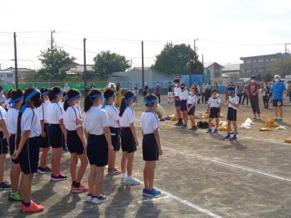 学年運動会のトップバッターは5年生です。開会式も子供たちが運営し、さすがは高学年です。